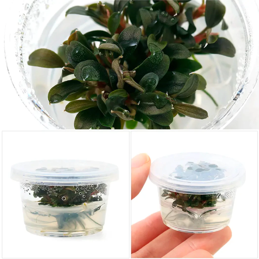 This plant thrives under medium to high light conditions and benefits from CO2 supplementation for optimal red coloration. It can be grown both submerged and emersed, reaching up to 8 inches in height.